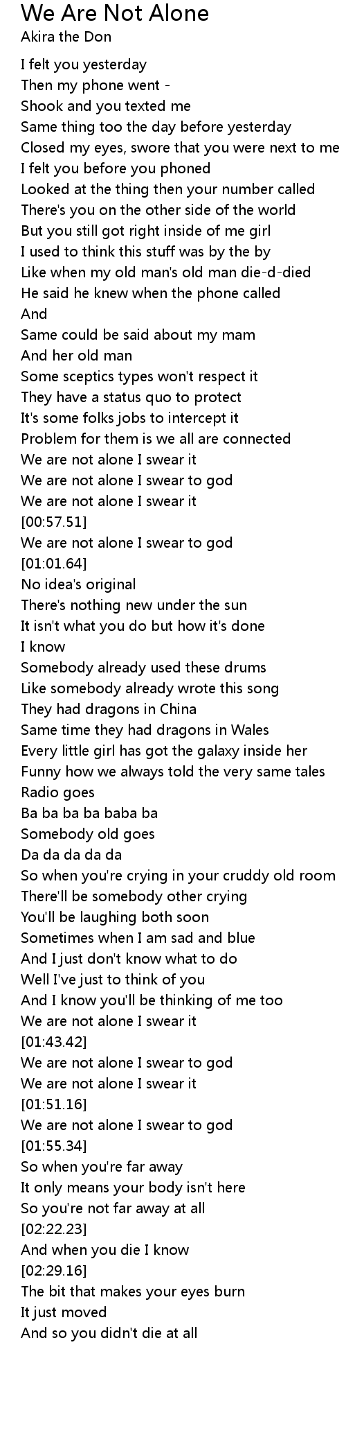 We Are Not Alone Lyrics Follow Lyrics